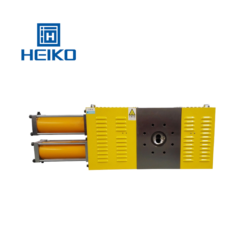 3、換網(wǎng)器又叫換網(wǎng)過(guò)濾器,換網(wǎng)器的主要功能是通過(guò)過(guò)慮工位上的過(guò)濾網(wǎng)過(guò)慮熔體內(nèi)的雜質(zhì),當(dāng)雜質(zhì)積累到一定程度時(shí),可以不用停擠出機(jī)主體或降速就可以直接換網(wǎng),以達(dá)到提高生產(chǎn)效率,節(jié)能降耗的目的。